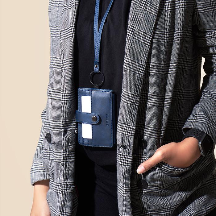 Cartiera Odet Lanyard ID Card Name Tag Kalung Pria Wanita Kulit Praktis Premium - BLACK