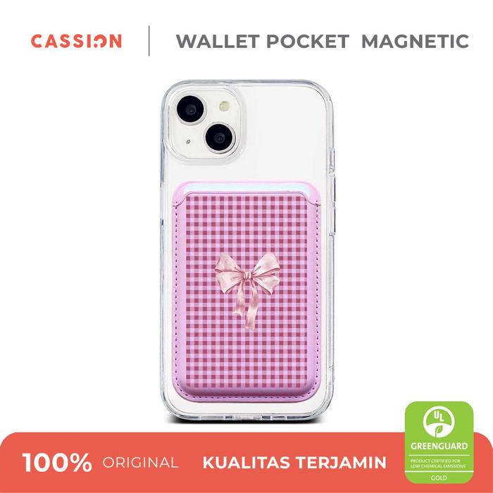 Card Pocket Wallet Holder Magnetic Cassion Pink Plaid - Black