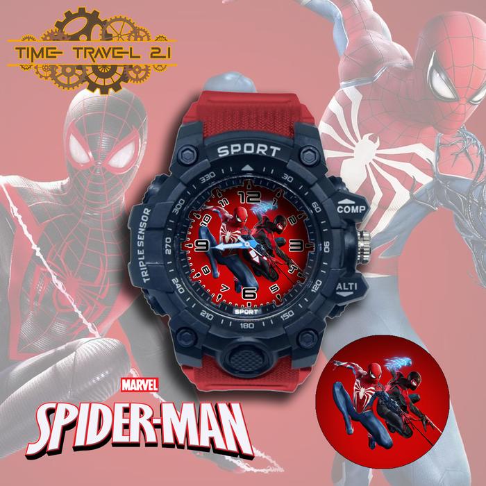 Murah Jam Tangan Anak Sport SPIDERMAN Strap Ruber Sporty Anti Air /Jam Tangan Sport 01X6SP01 - MERAH Elegan