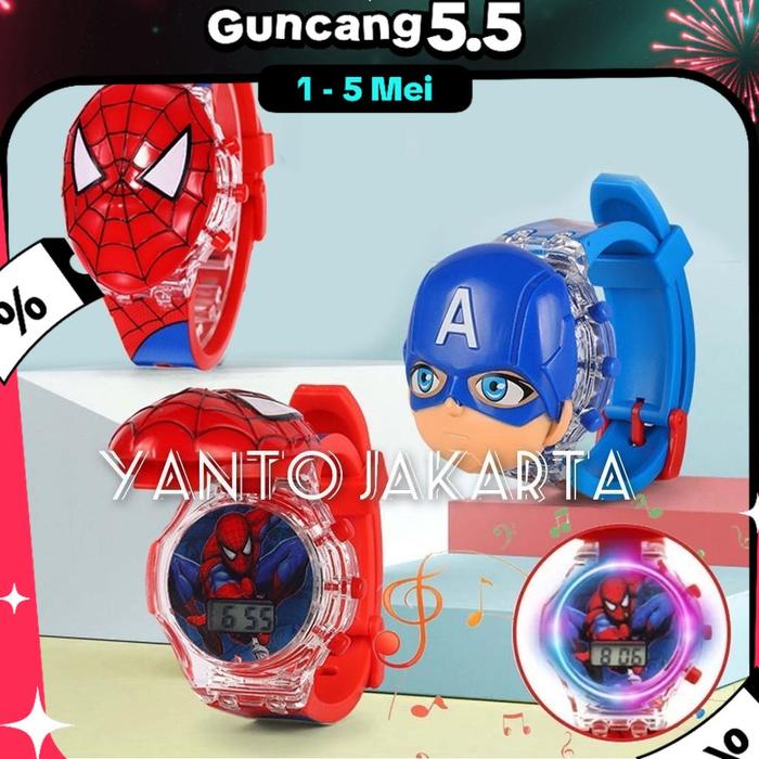 Promo [GJT]JAM TANGAN ANAK LAKI LAKI KARAKTER LAMPU MUSIK MELODI - ZL8528-SPIDERMAN Keren