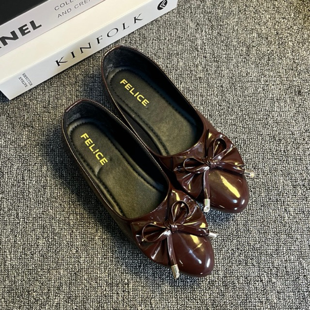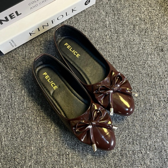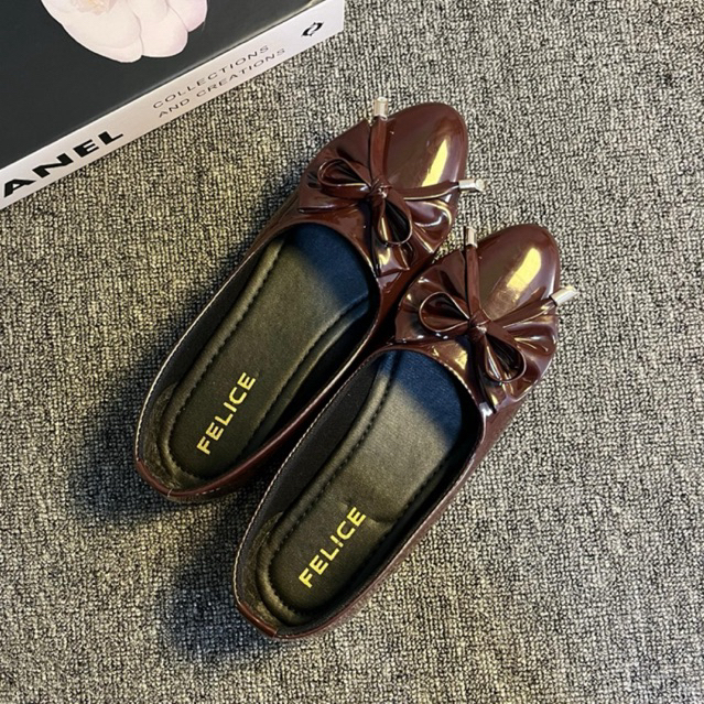 FELICE - Sepatu Balet Wanita Pita Mahogany Kekinian Flatshoes Trend