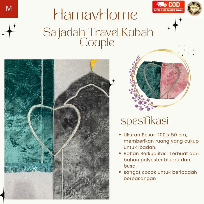 SAJADAH COUPLE TRAVEL KUBAH POLOS ANTI SLIP, SAJADAH COUPLE LOVE UK 100X50 CM (SUDAH DAPAT 2 )