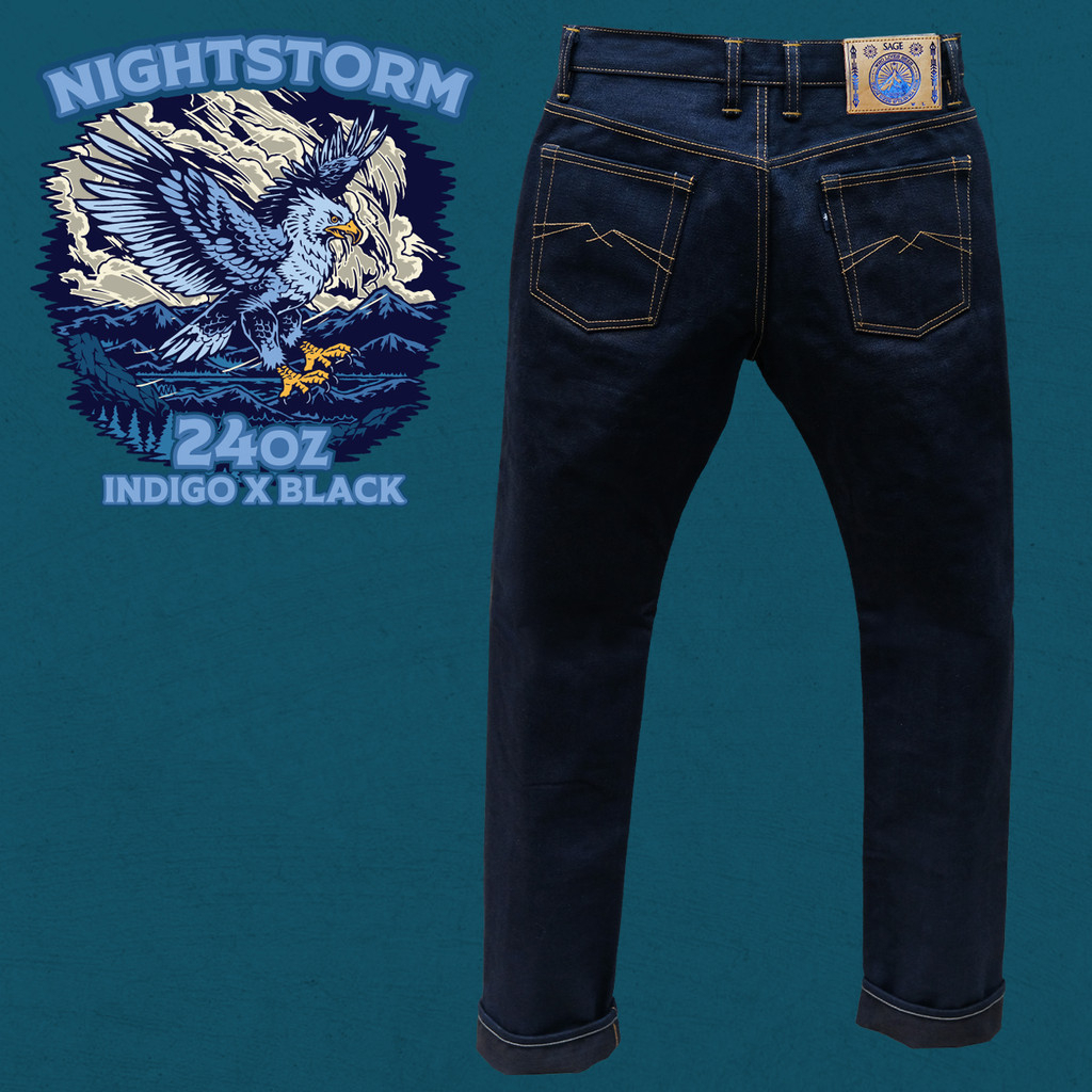 Nightstorm 24oz Unsanforized Deep Indigo x Black Selvedge Denim