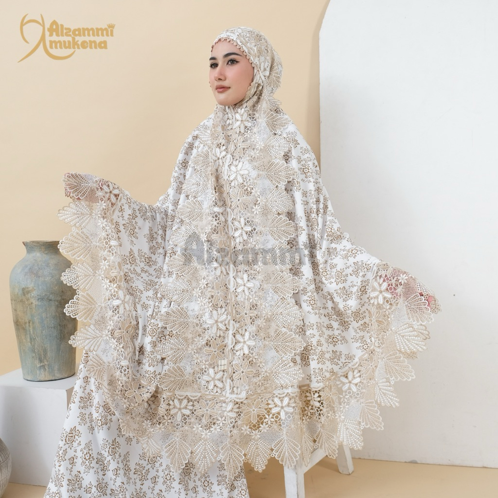 Mukena Dewasa Ameera Bahan Katun Foil Renda Mewah Full