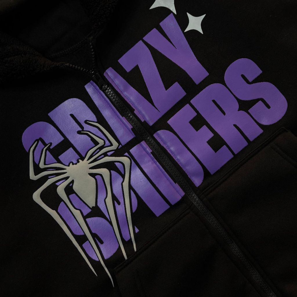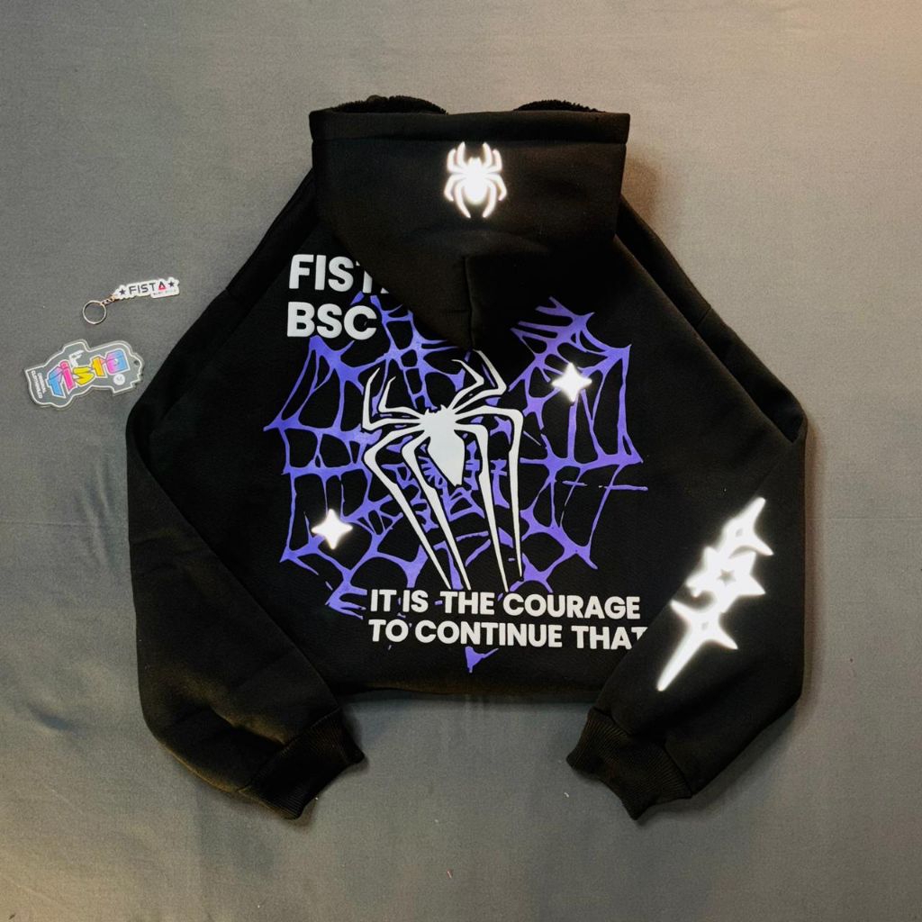 Hoodie boxy spider ziper dua kepala sablon palstisol+fuup foaming bulu serpa+reflektip menyala gsm300 premium(UNISEX)