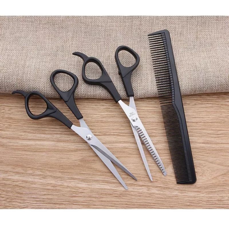 1 Set 3pcs Gunting Rambut Salon Gunting Sasak + Sisir