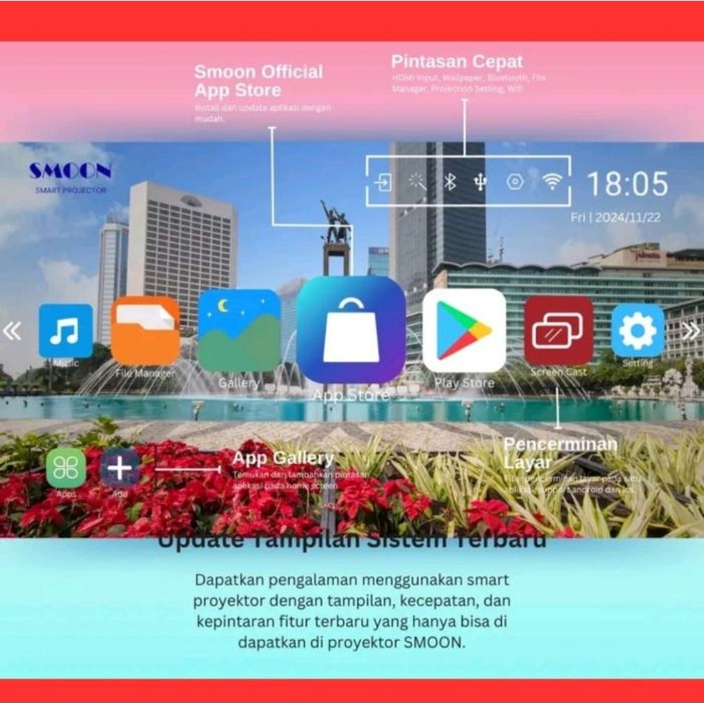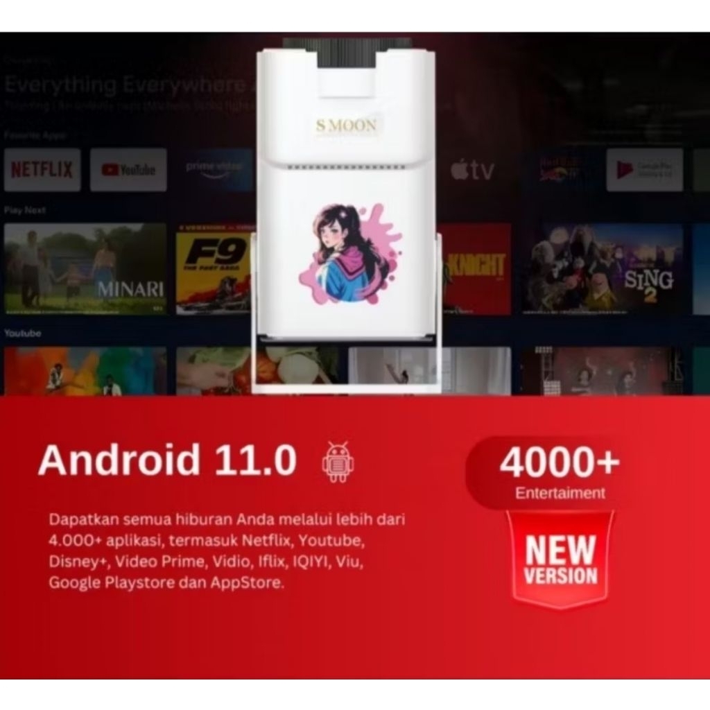 S Moon 320 Proyektor Smart Android LCD TV dengan Resolusi 1280x720p, Sistem Android 11.0, Koneksi Wi-Fi & Bluetooth 5.0, dan Fitur Youtube dan Netflix