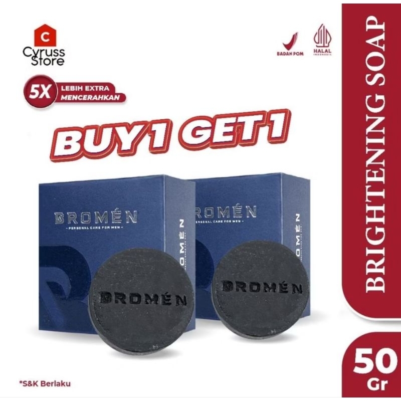 2 Pcs Paket Hemat BROMEN Skincare Cowok Brightening Soap Sabun Cuci Muka Mencerahkan Pemutih Pencerah Untuk Pria Kemasan