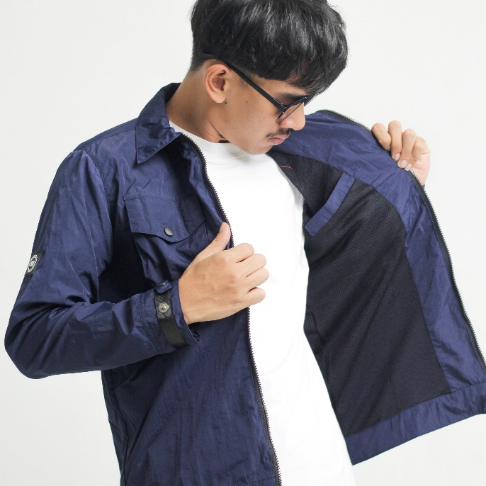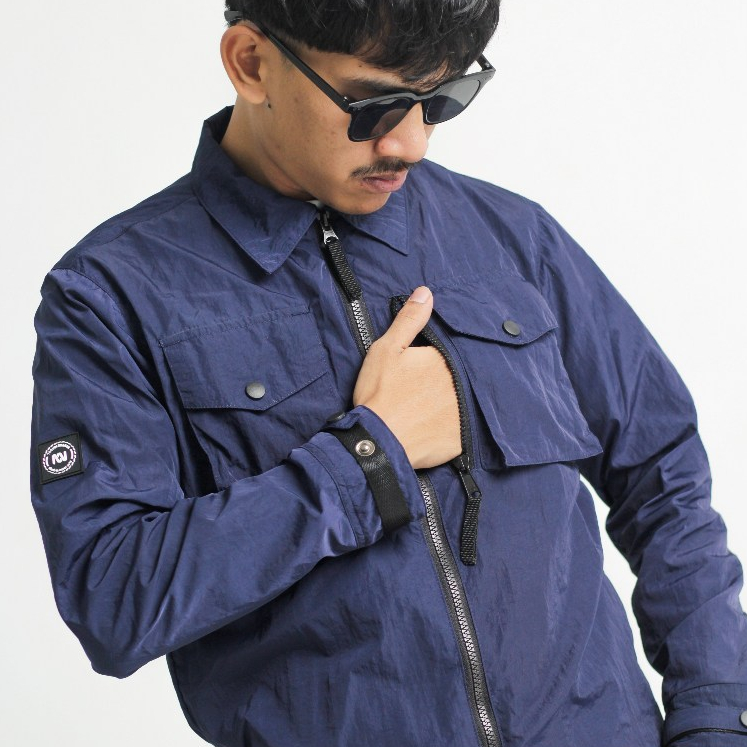 troublemaker obsessed jaket pria wanita gorpcore terbaru waterproof Overshirt Buckingham Navy jaket trouble maker