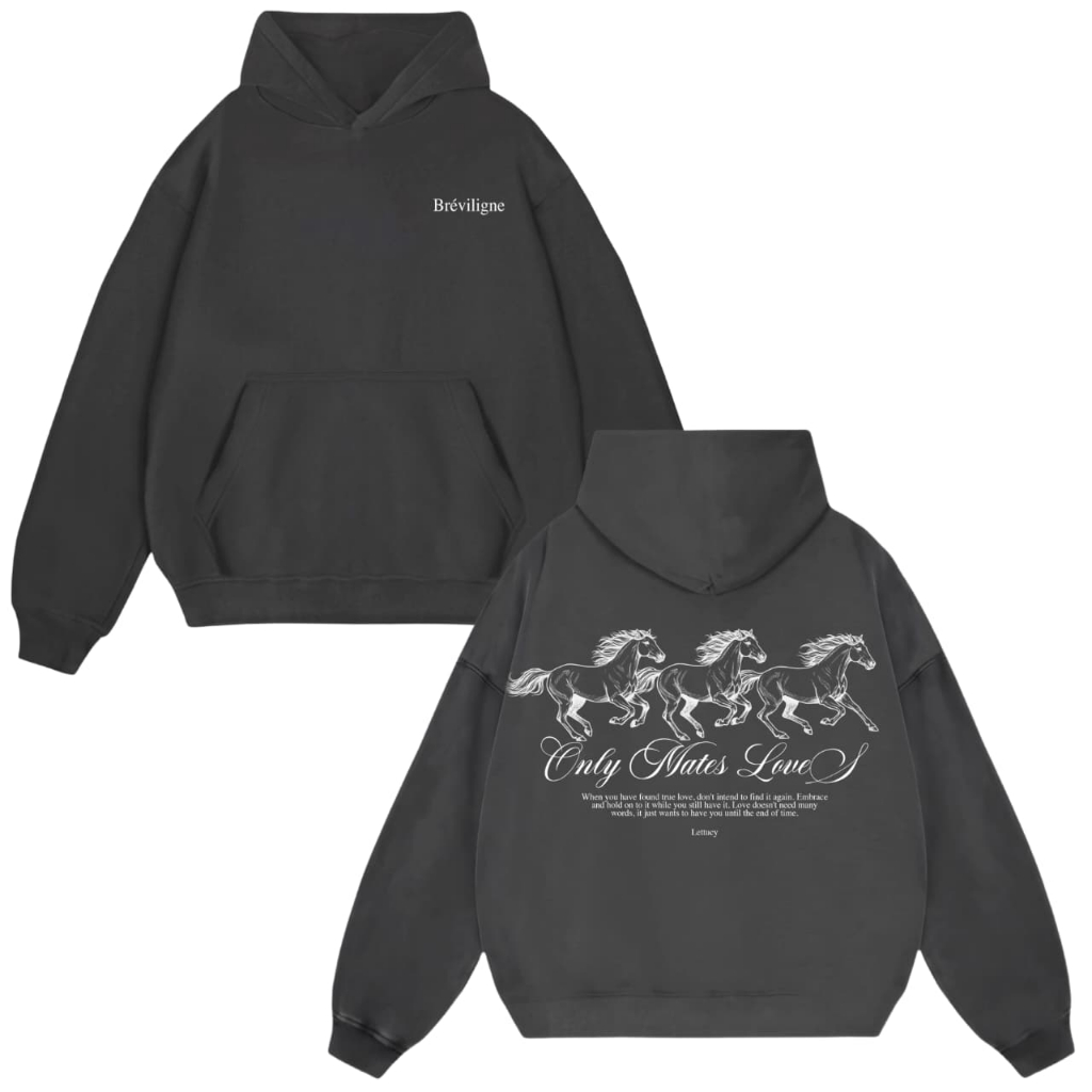 Lettucy Hoodie Boxy | Hoodie Boxy Pocket Motif White Horse