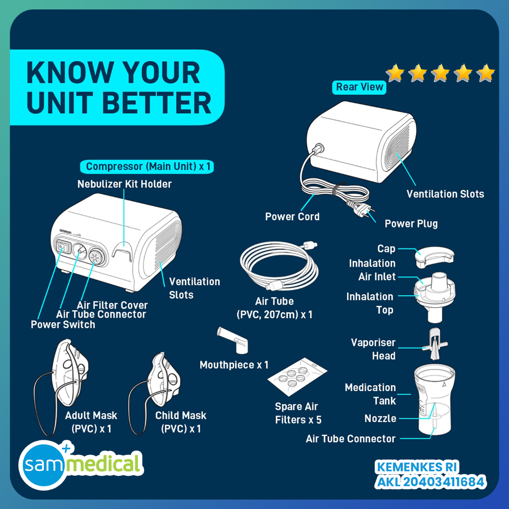 OMRON NE C28 Nebulizer Compressor /Alat Uap / NEC28 / Perawatan Pernafasan / Nebuliser Kompresor