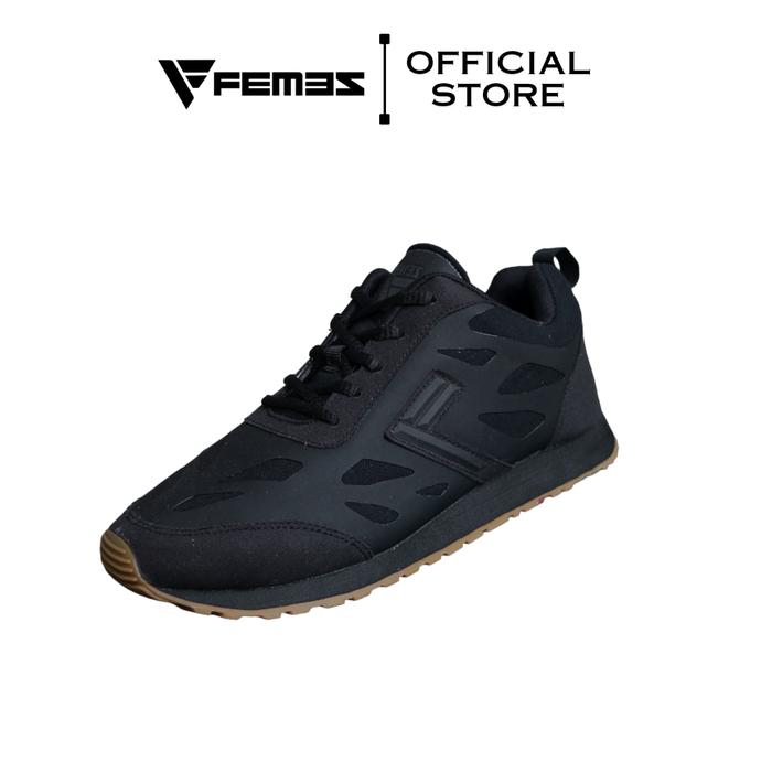 Original Femez Lite Berlin Sepatu Casual Pria Big Size Jumbo 39-48 Full Hitam Black Rubber Karet Sepatu Sekolah Hitam Po