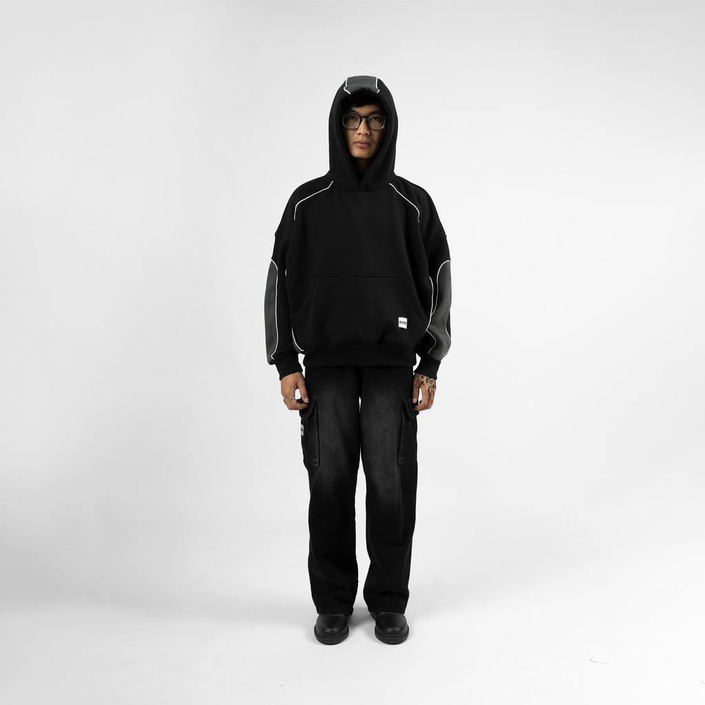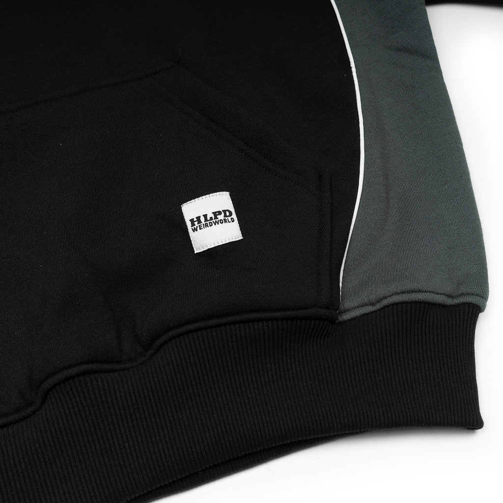 HLPD WeirdWorld Jaket Hoodie Boxy Kombinasi Pria Wanita Sweater Valez - Polos Black