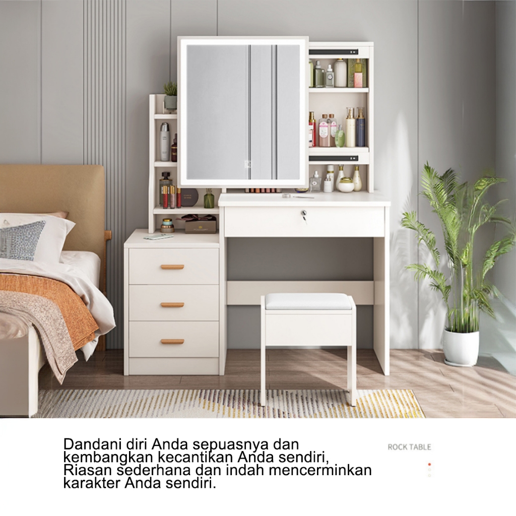 Meja Rias Putih Lampu LED/Meja Rias Kaca Sliding Minimalis kursi pita lampu plastik kayu jati led makeup bestseller