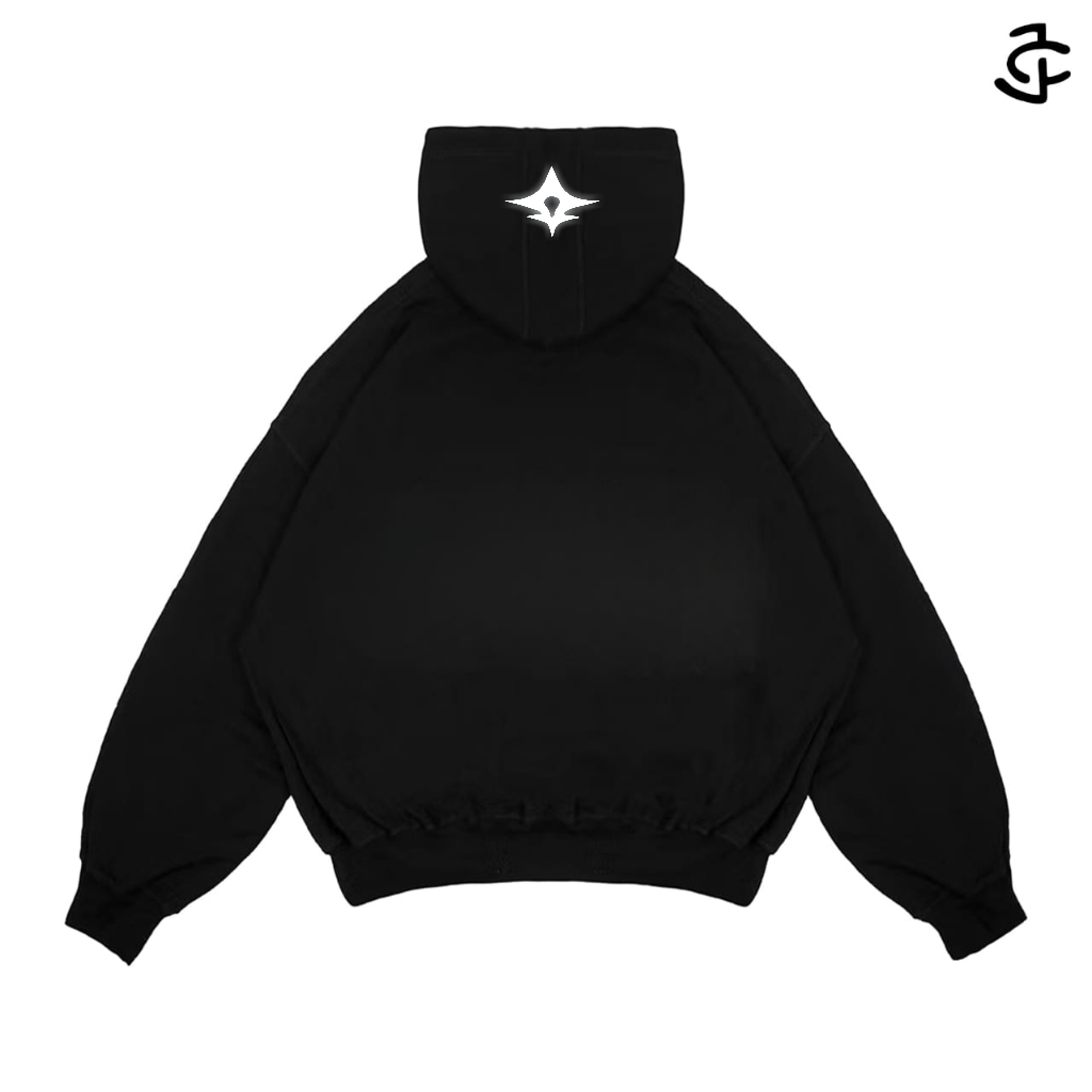 JICO Hoodie Boxy Double Zipper Menyala Reflective TRIBALL Unisex Oversize Warna Hitam