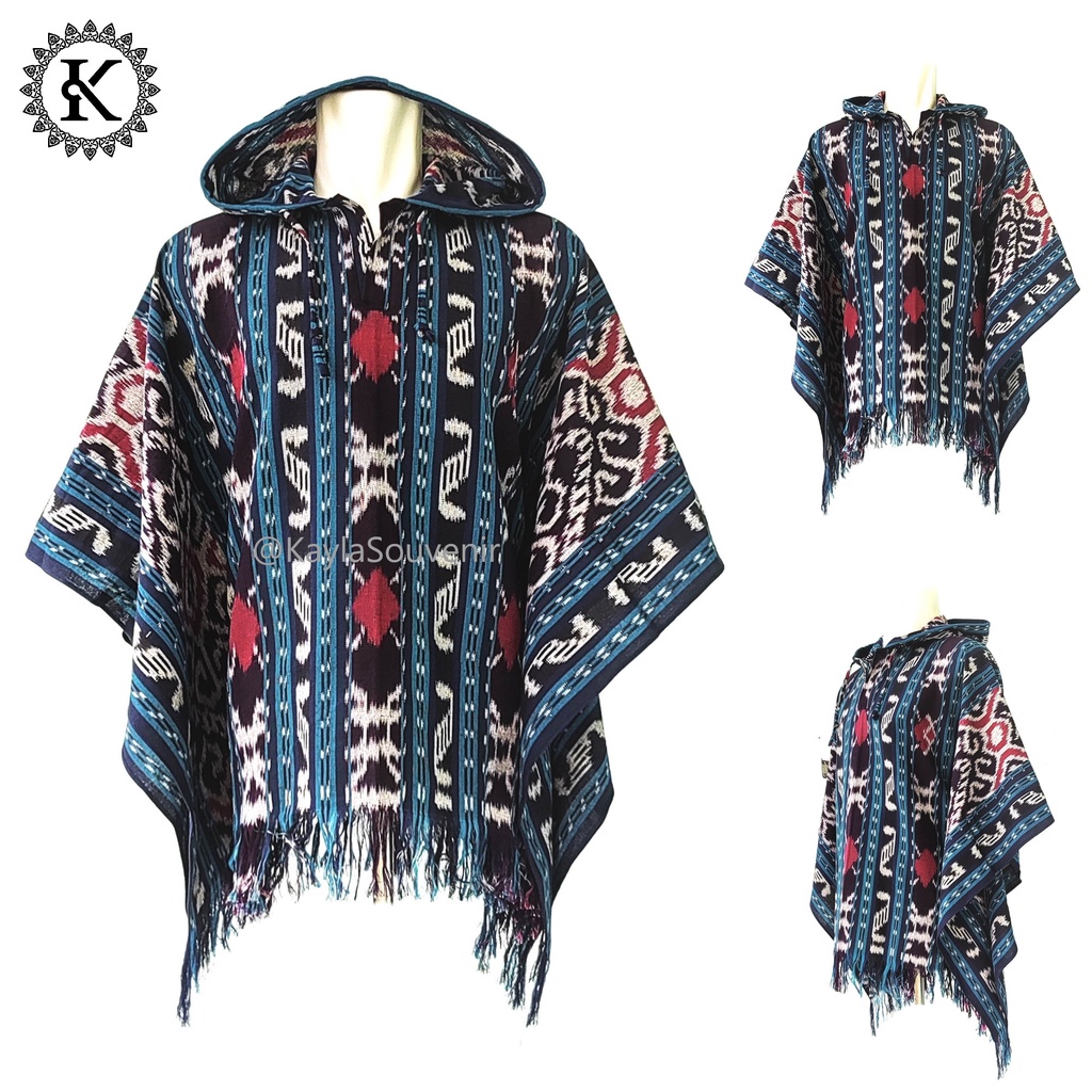 Hoodie Tenun Batwing Oblong / Hoodie Ponco Tenun Etnik Pria Wanita - Kain Etnik