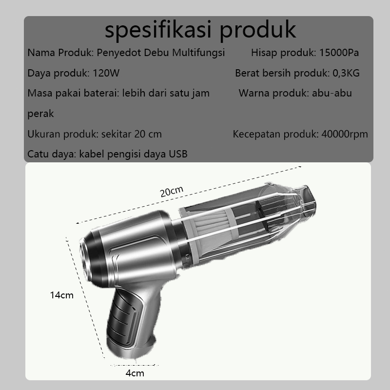 LHADEVSIG 4 in 1 Vacum Cleaner Mobil 3 Filter Penyedot Debu Multifungsi Cordless Vacuum Cleaner Portable Tiup/Hisap/Meng