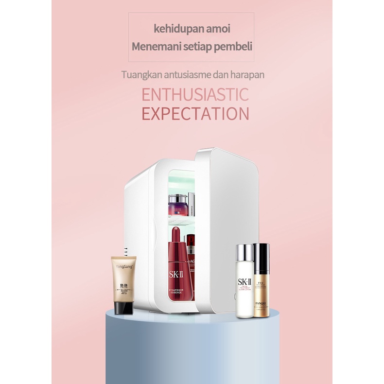 BLUE SKY 8L Kulkas Skincare Mini Fridge LED Mirror Minifridge Portable Cermin Skin Care Minifridge Kosmetik Makanan