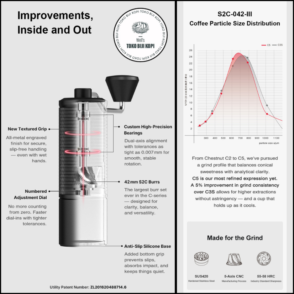 Timemore Chestnut C5 Manual Hand Coffee Grinder 42mm / Alat Penggiling Kopi Manual Timemore C5 Burr S2C 42mm
