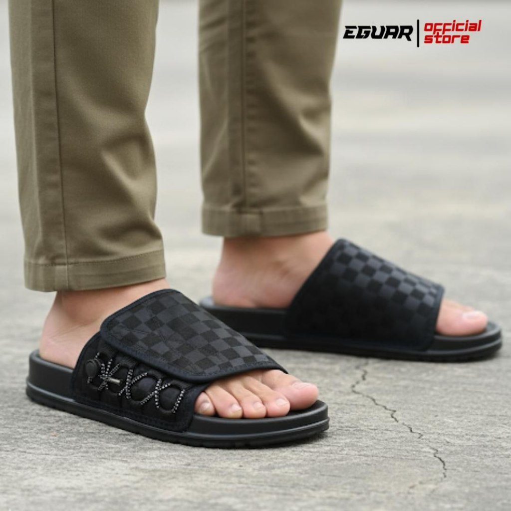 EGUAR Sandal Pria Casual Motif Catur Sandal Slide Import Ruber Pylon Tearu