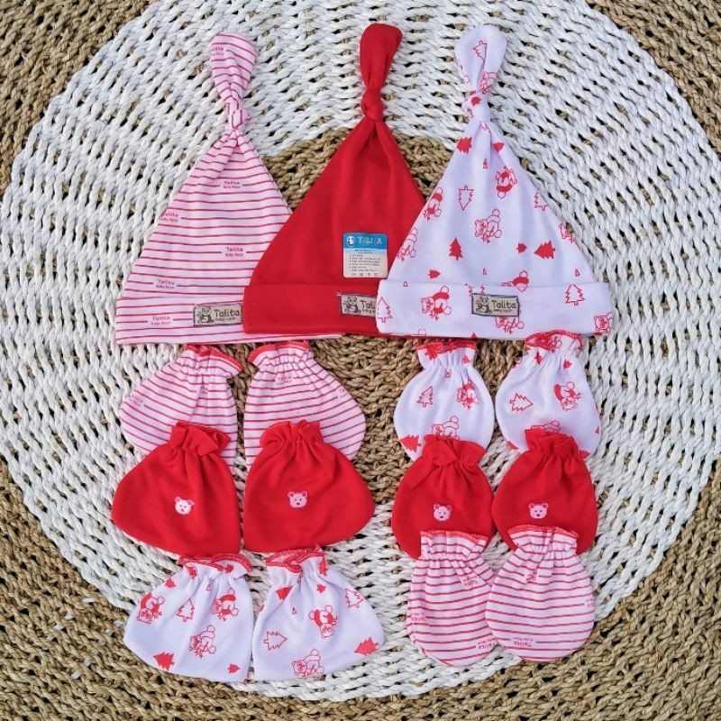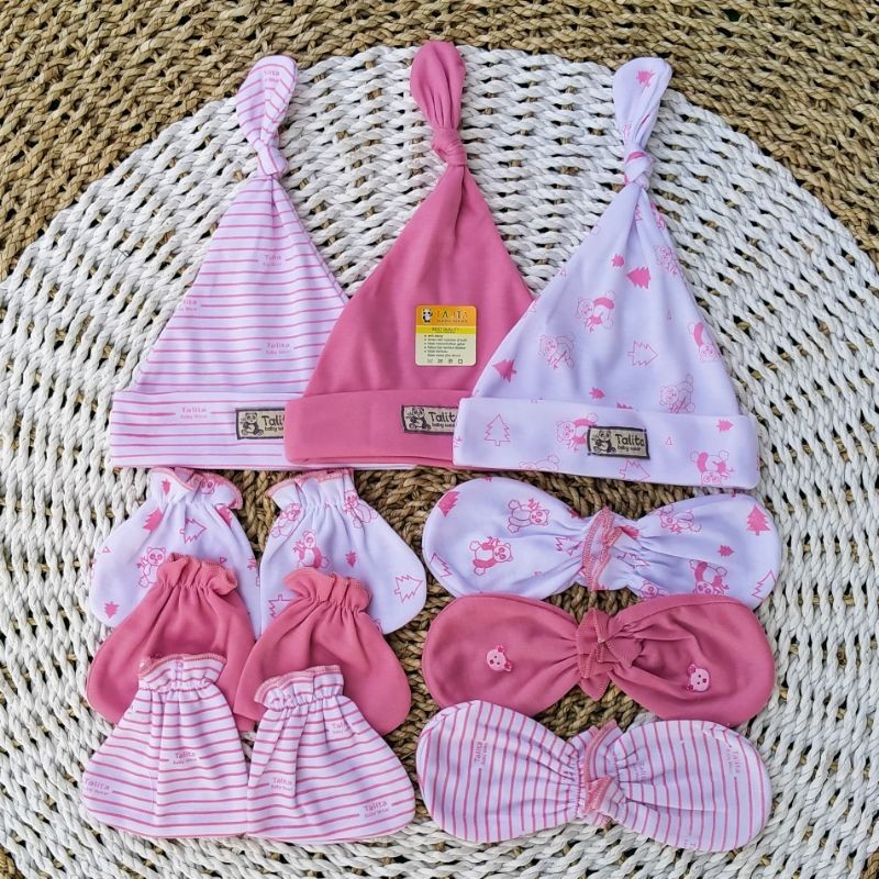 ISI 3 PCS Topi Dan 3 Set Sarung Tangan Kaki Bayi Baru Lahir Seri Warna Newborn Talitababywear