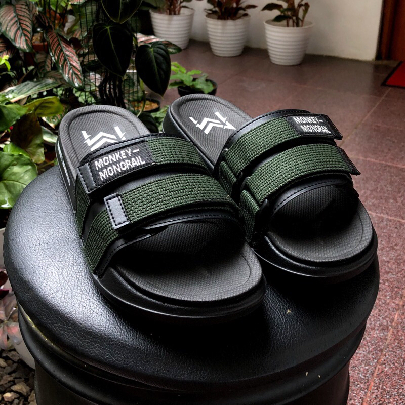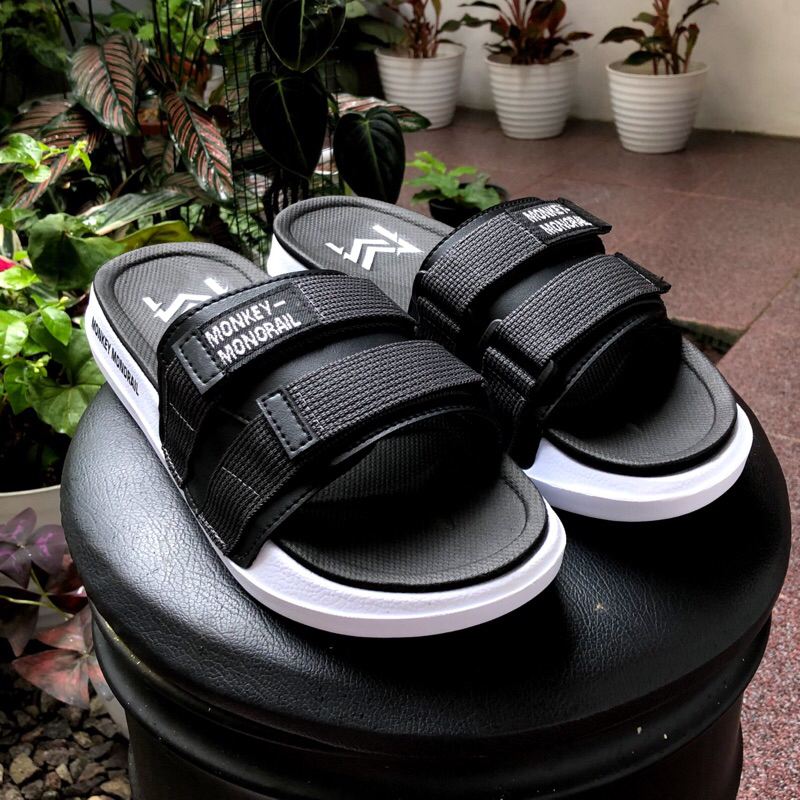 Monkey Monorail - Sanata White-Black Sandal | Sandal Slide Sanata Putih-Hitam Double Spon Monkey Monorail 8 Warna