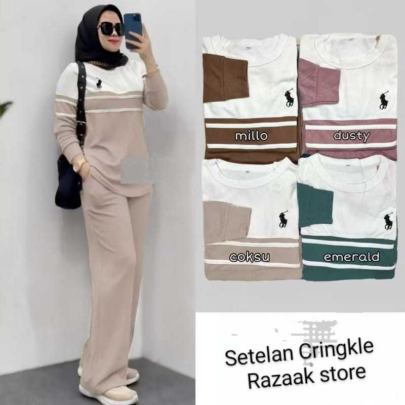 SETELAN WANITA CRINGKLE JUMBO KEKINIAN APOLO SET TERBARU BAJU SETELAN POLOS KOMBINASI LENGAN PANJANG