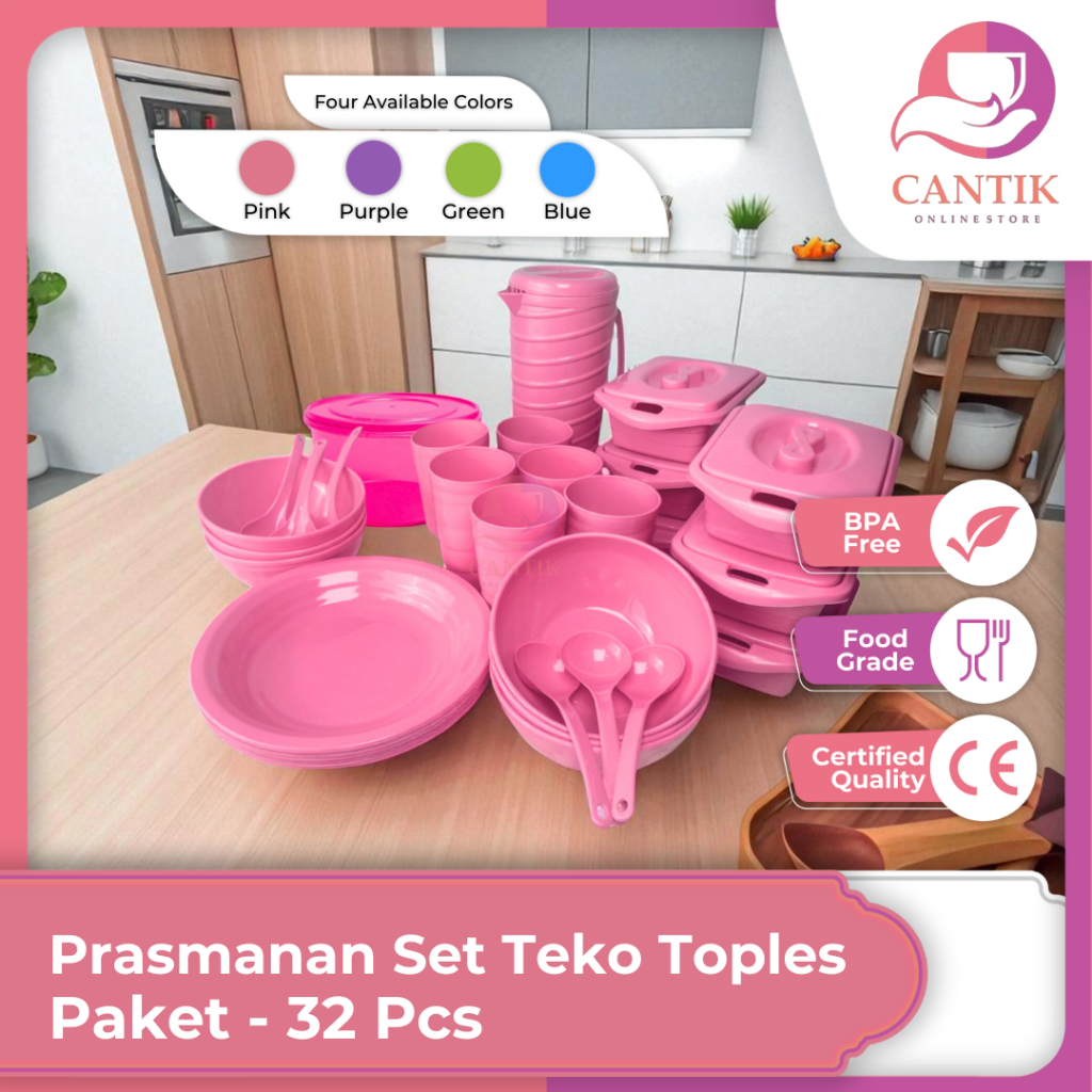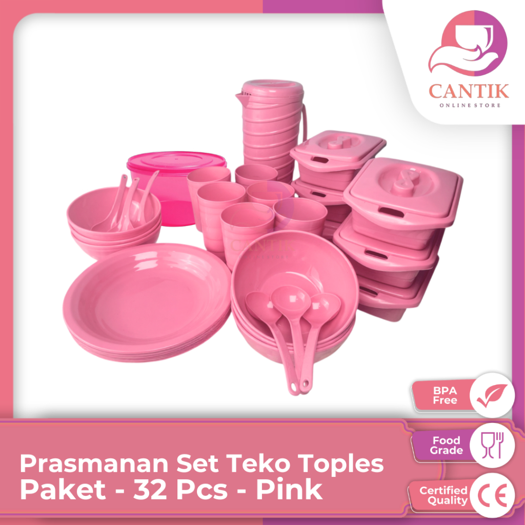 Set Prasmanan Lengkap 32 Pcs Warna Pink - Perlengkapan Makan Keluarga Bonus Centong