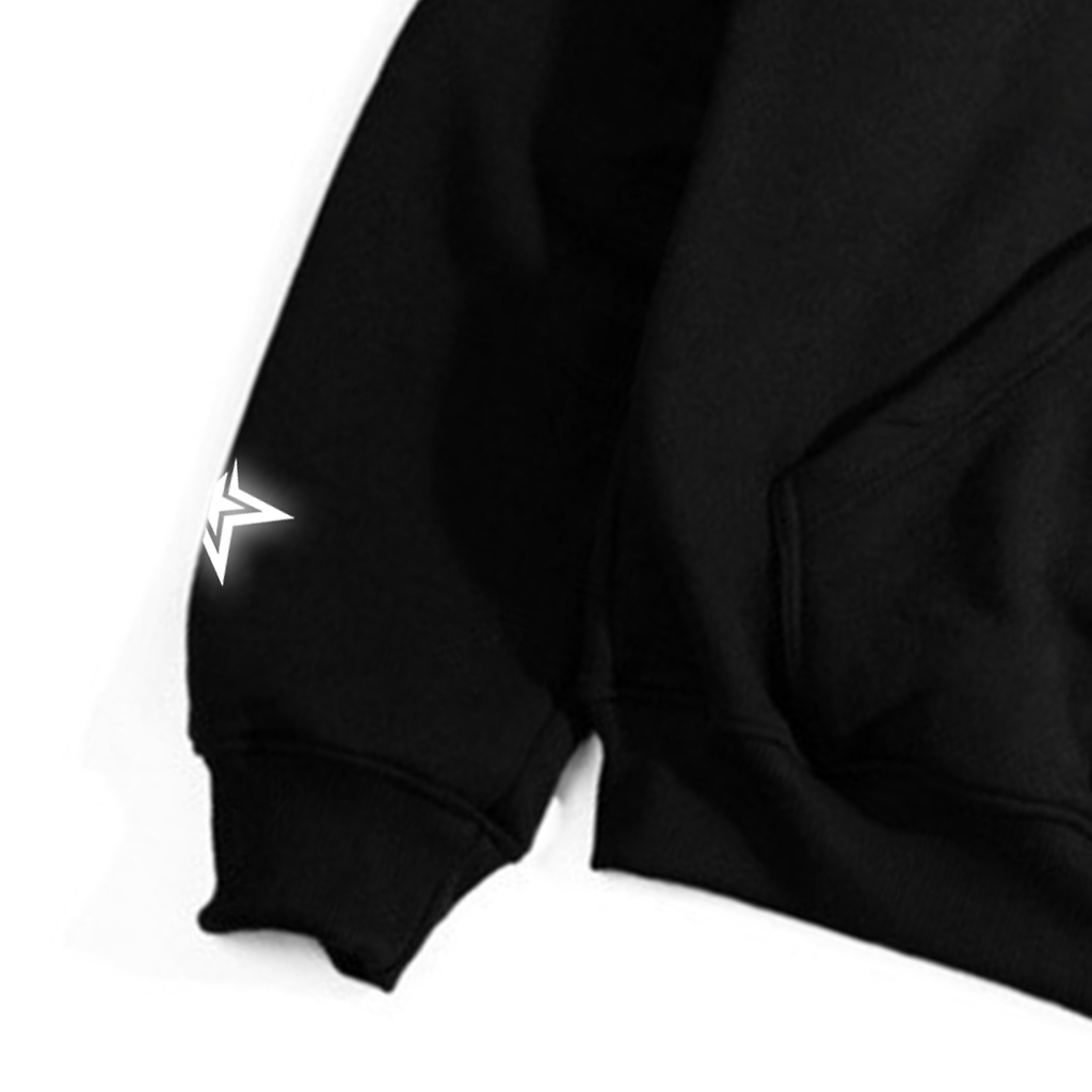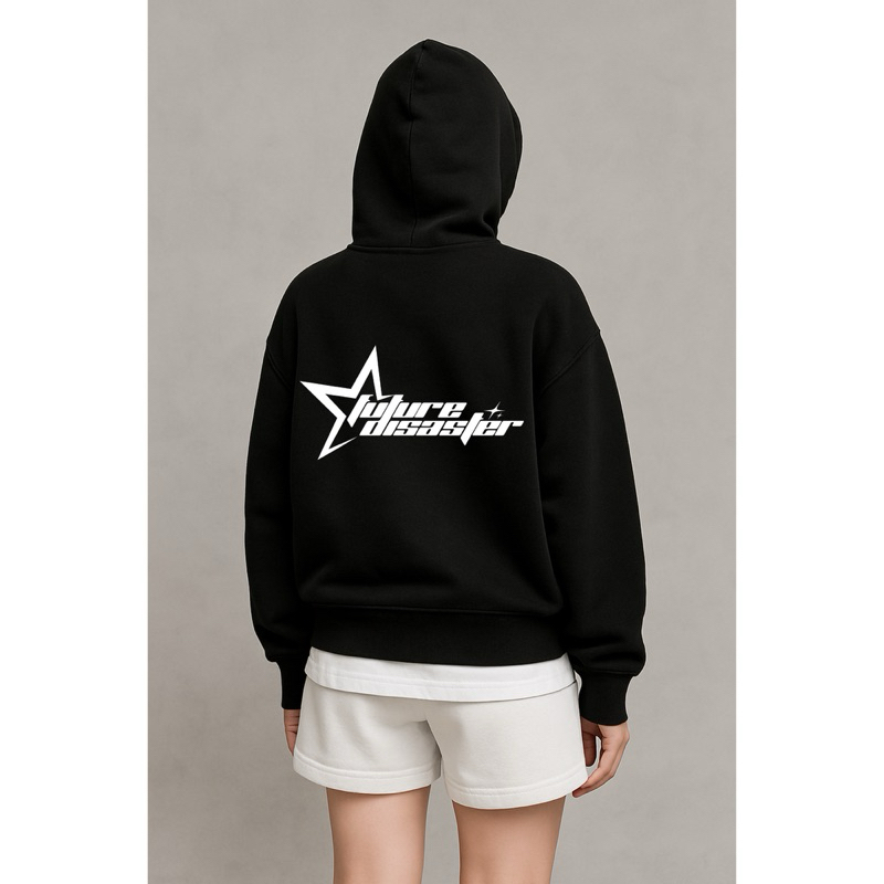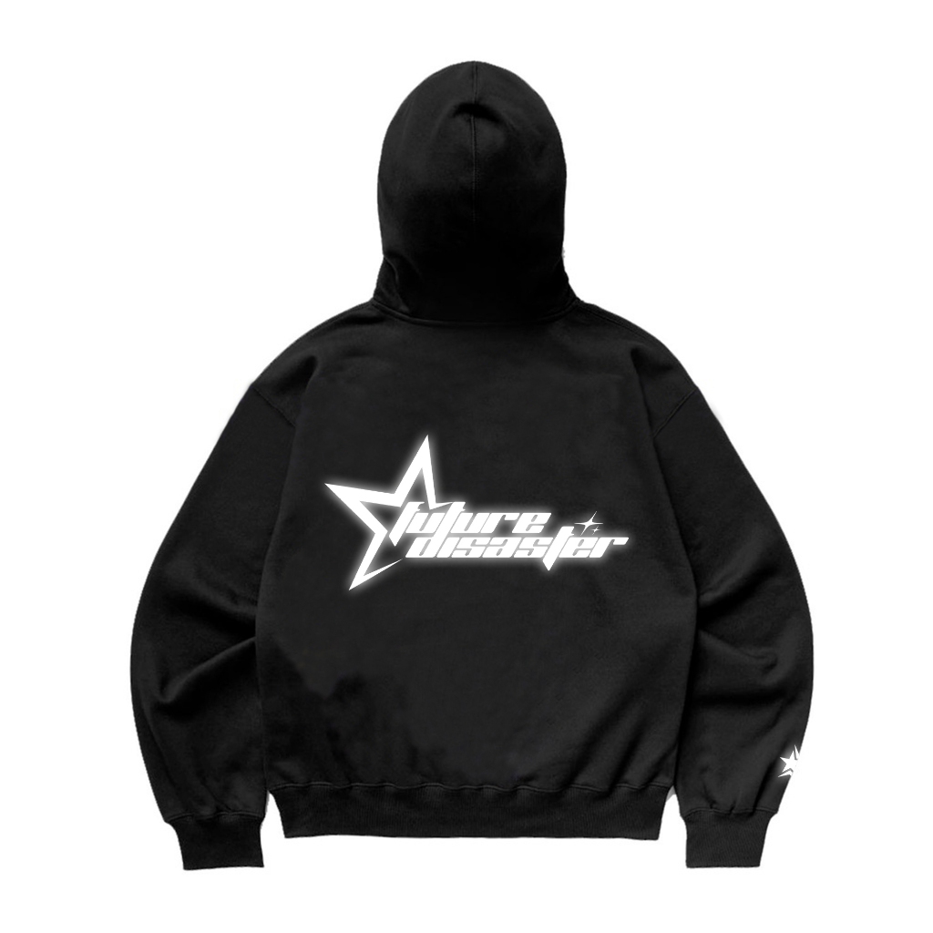 Gadabang Hoodie Boxy Starboy Oversize Sablon Menyala Reflective Future Disaster Hitam