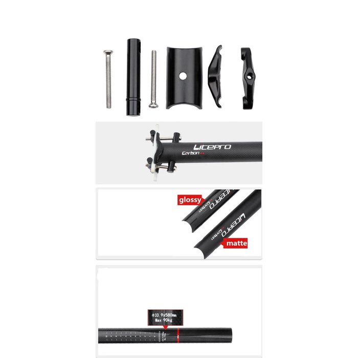 Seatpost Sepeda LITEPRO Carbon 33.9580mm Black