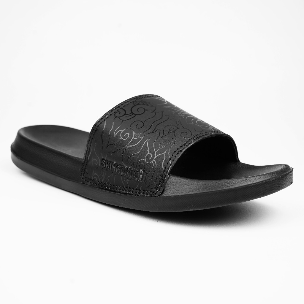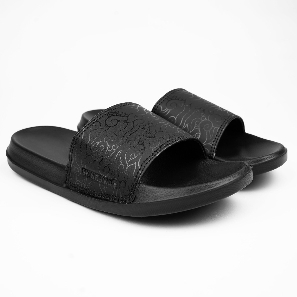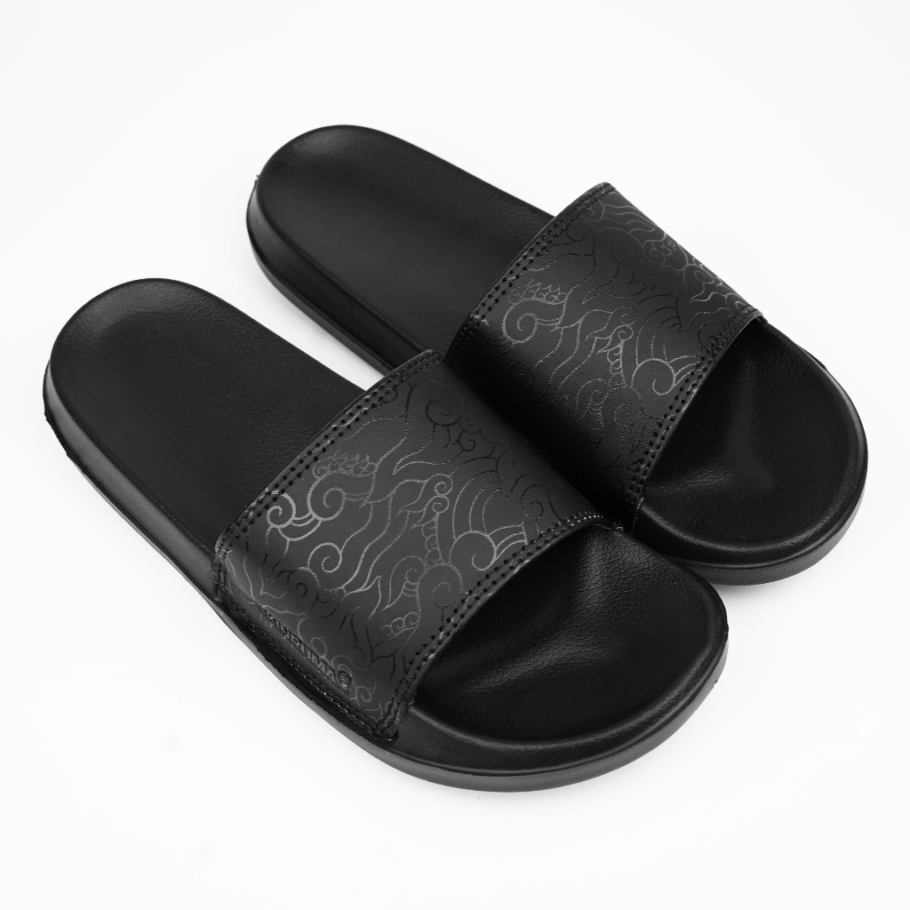 BOYSE Sendal Selop Karet Pria Wanita SKINRUMA Japanesse Clouds Hitam Fullblack / Slop Pria / Slip On Pria / Slide Pria