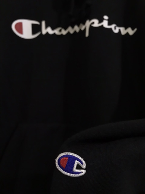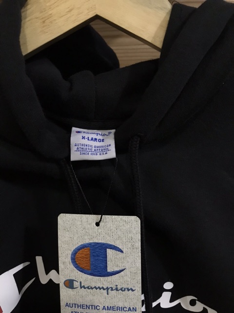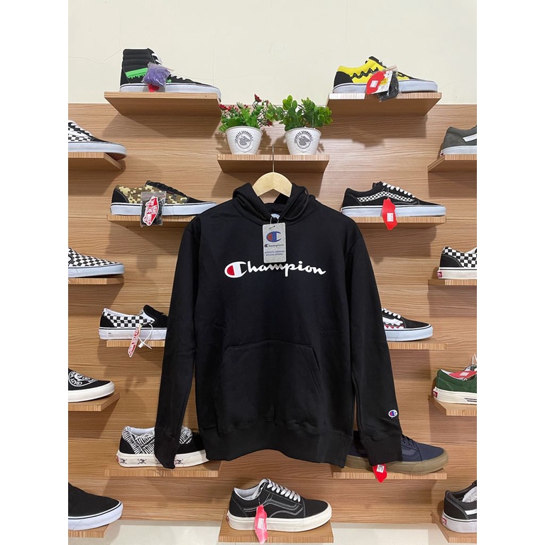 100 PERSEN ORIGINAL CMT HOODIE CHMPION SCRIPT LOGO BLACK ( FULL TAG )