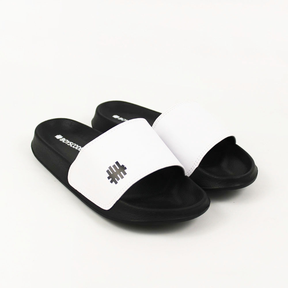 BOYSE Sendal Selop Distro Pria Wanita Original Petir Logo Hitam Putih / Slop Pria / Slip On Pria