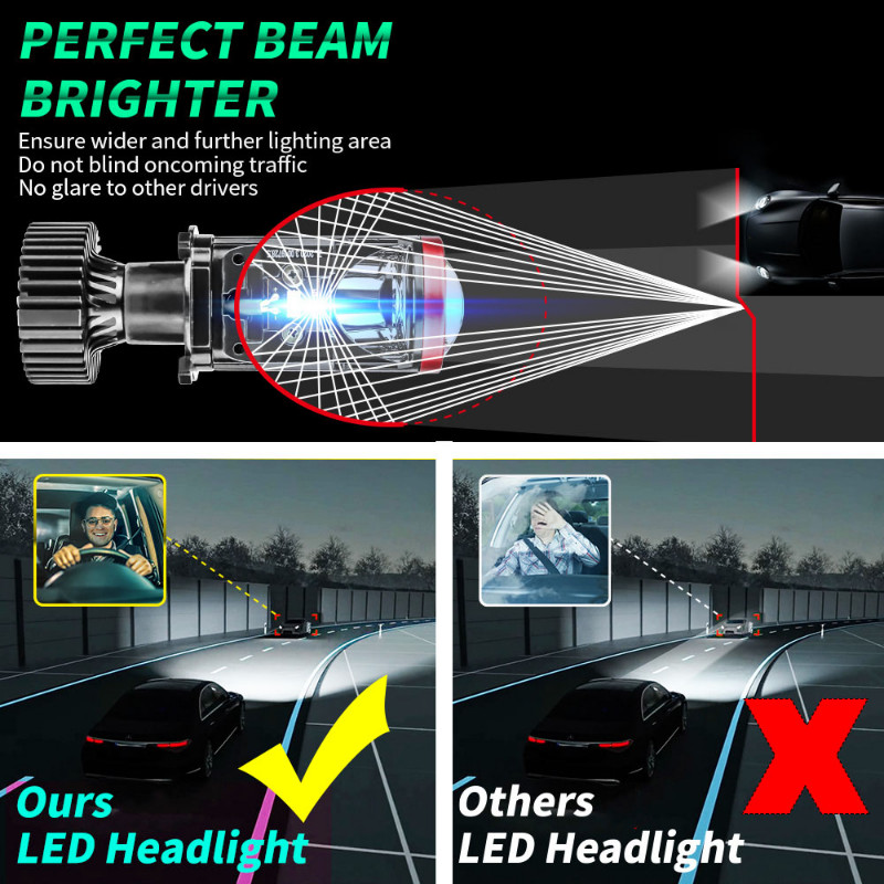2PCS Y7D H4 Lampu Depan Mobil LED 100W Lensa Proyektor Mini H4 6000k 30000LM Lampu Mobil LED Otomatis Kipas Turbo Sinar