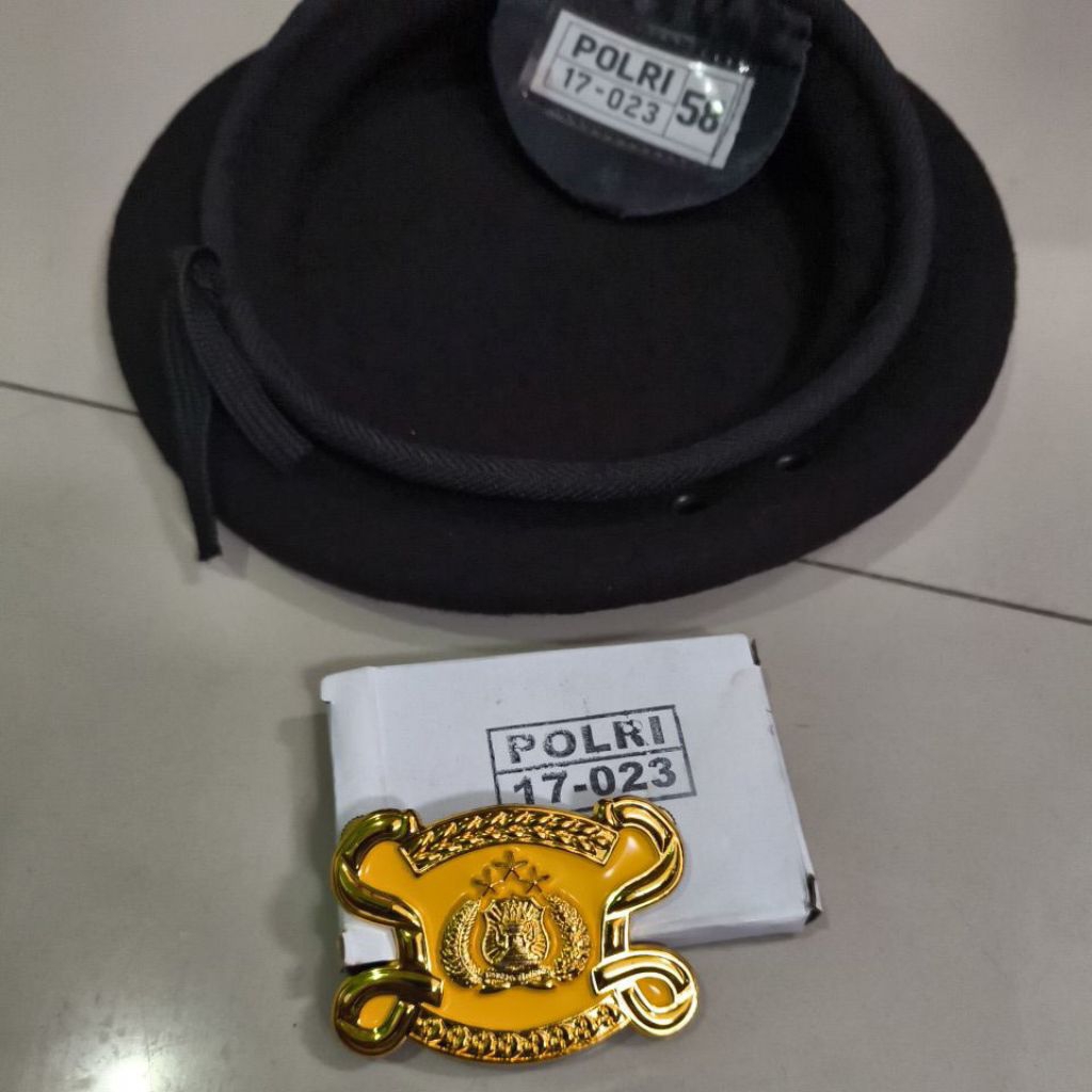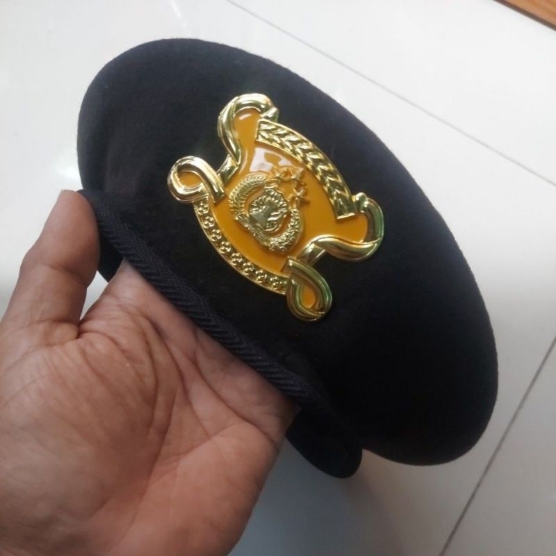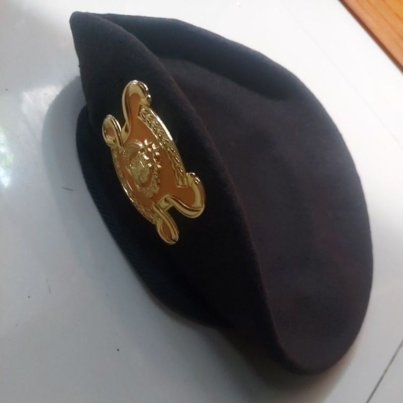 Topi BARET SABHARA COKLAT WOL JATAH POLRI +EMBLEM