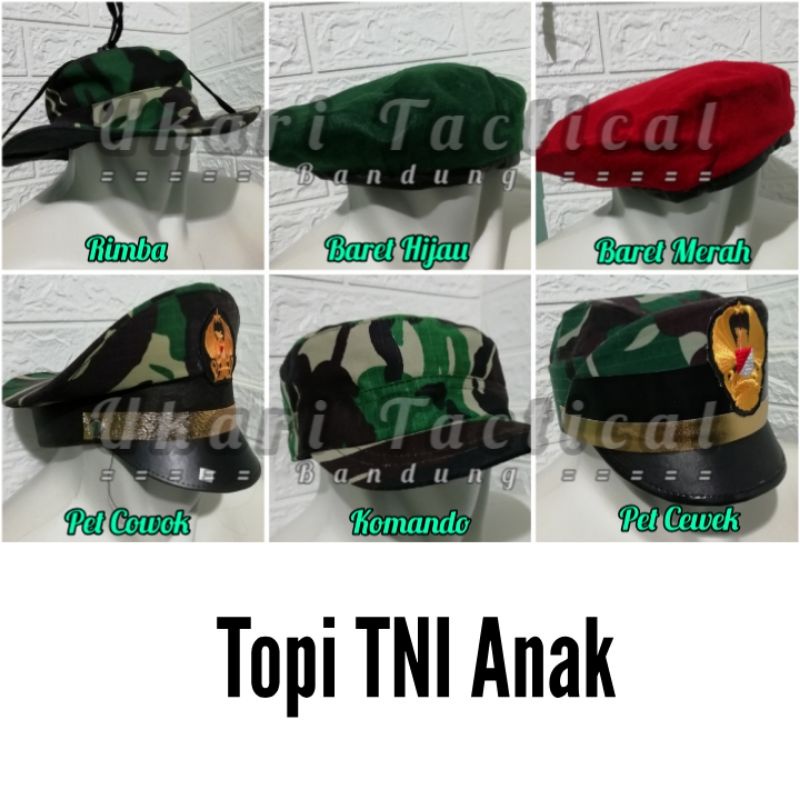 Topi baret pet komando rimba loreng TNI polri polisi kecil polantas pocil untuk perlengkapan karnaval anak murah