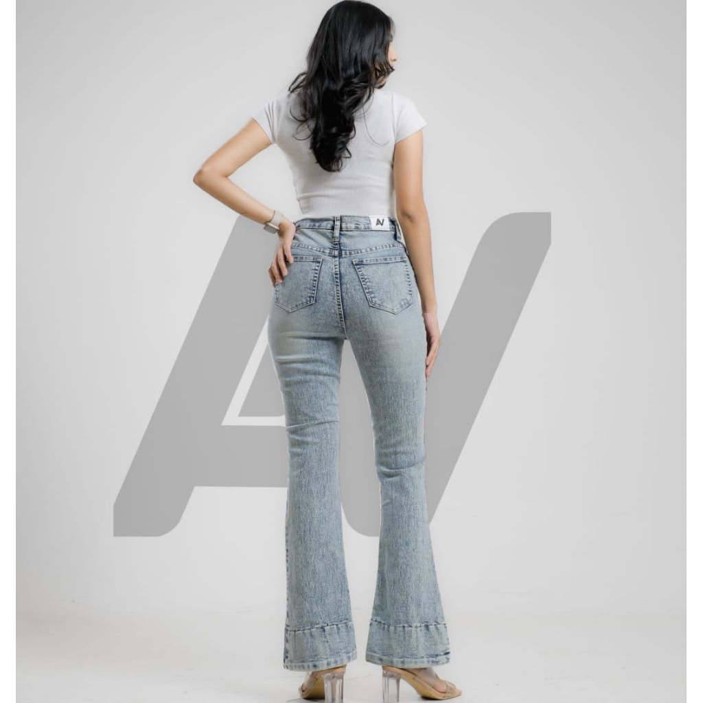 Cutbray jeans wanita - Celana Cutbray Highwaist Warna Light blue Retro Stretchy terbaru