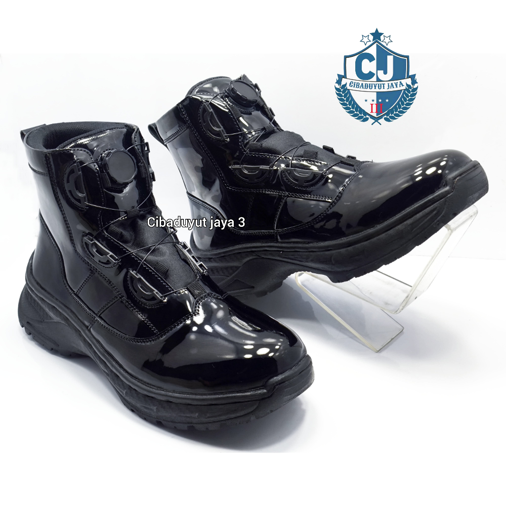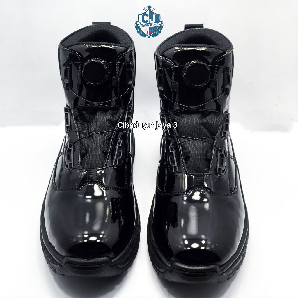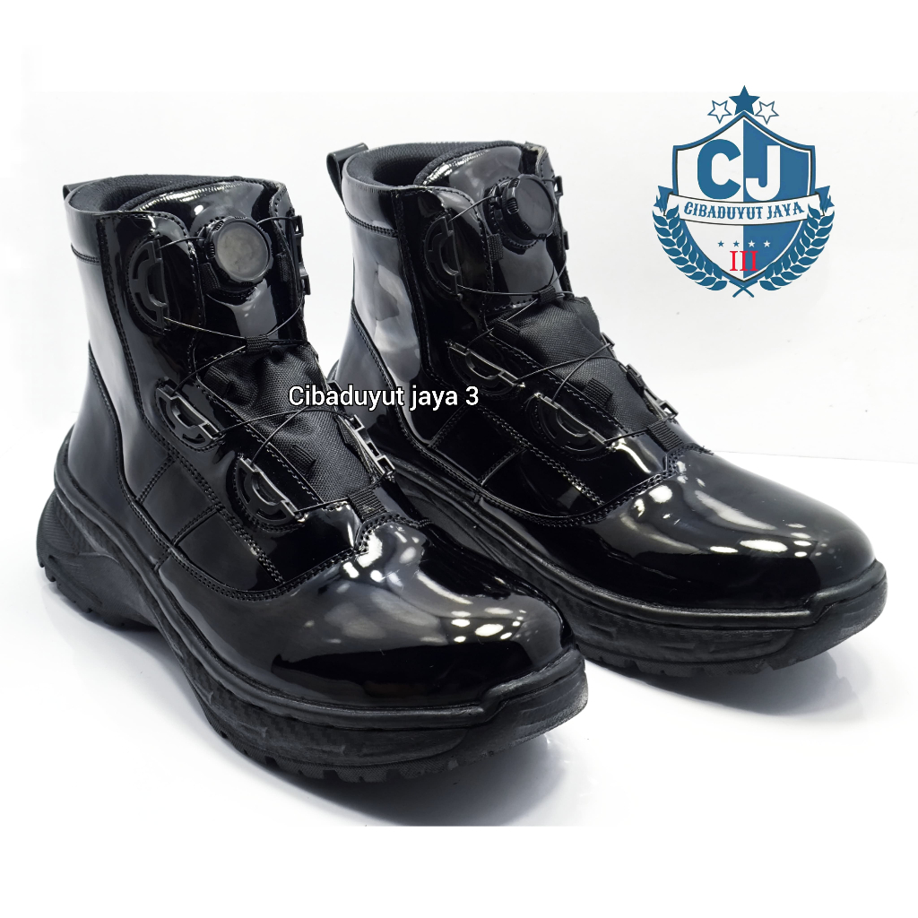 SEPATU PDL PDH TACTICAL HITAM KILAP TALI PUTAR WATERPROOF MID-CUT 6"INCH GAZEL QUICK RELEASE