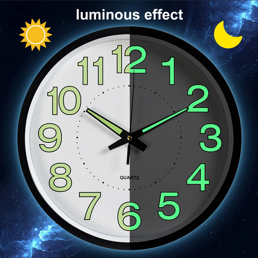TaffHOME Jam Dinding Bulat Quartz Luminous Glow in The Dark 30cm