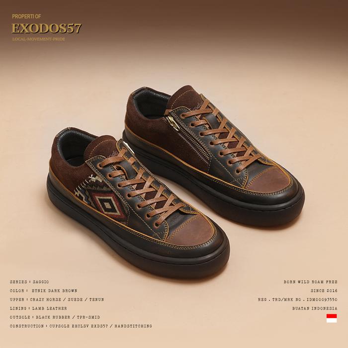 Sepatu Sneakers Kulit Pria Exodos57 Saggio Etnik Dark Brown - 36