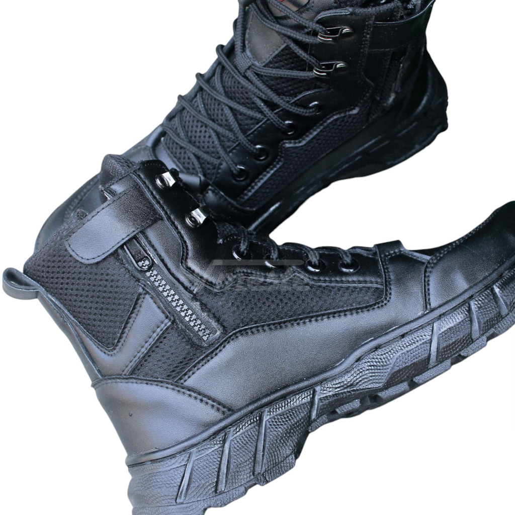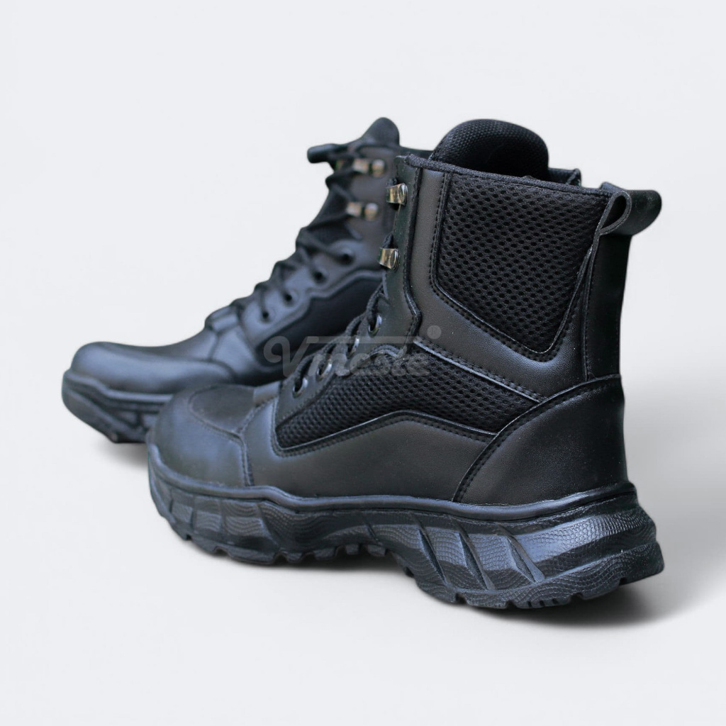 VMESTE - Sepatu PDL Cello TNI Polri Brimob Security Satpam Kulit Sintetis Hitam Doff Ujung Besi