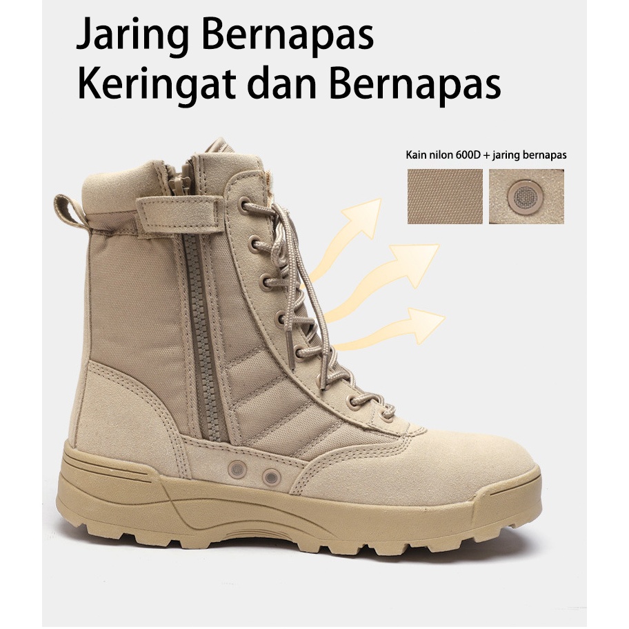 Sepatu Boots Pria PDL PDH TNI POLRI Tactical Military Gurun Combet High Best Quality Kerja Lapangan Paspampres Polpp Satpam