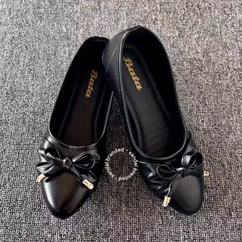 Sepatu Flatshoes Cewek Wanita Variasi Pita Hitam Krem - Bata Series