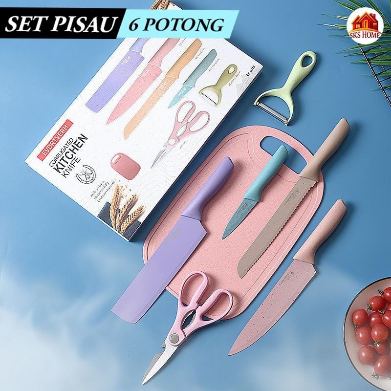 Set Pisau Dapur Grosir Isi 6 Lengkap Stainless Steel Bahan Premium Anti Lengket Serbaguna Termurah