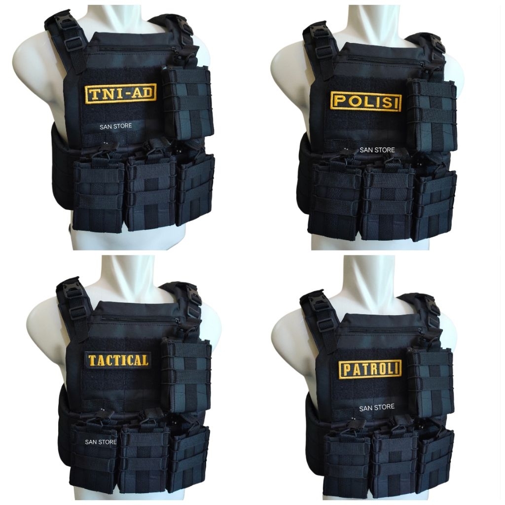 ROMPI ANTI ANGIN/BODY VEST POLISI/TNI AD/PATROLI/TACTICAL HITAM LENGKAP