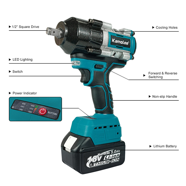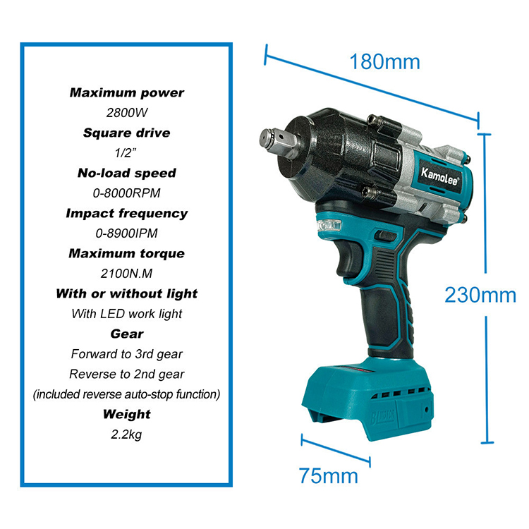 Kamolee DTW800 2100N.M Impact Wrench 1/2" [Kompatibel Dengan Baterai Makita/JLD