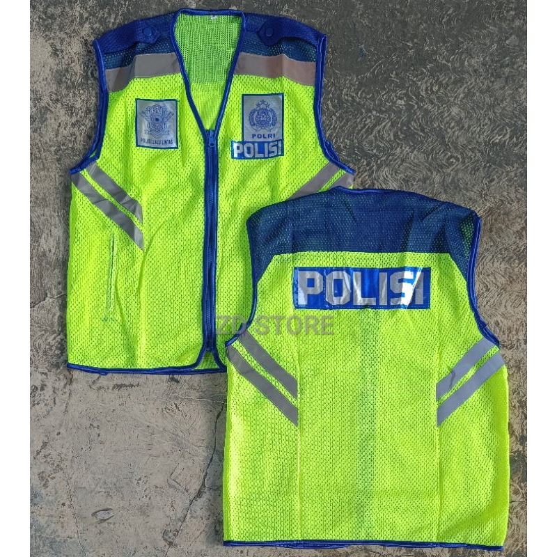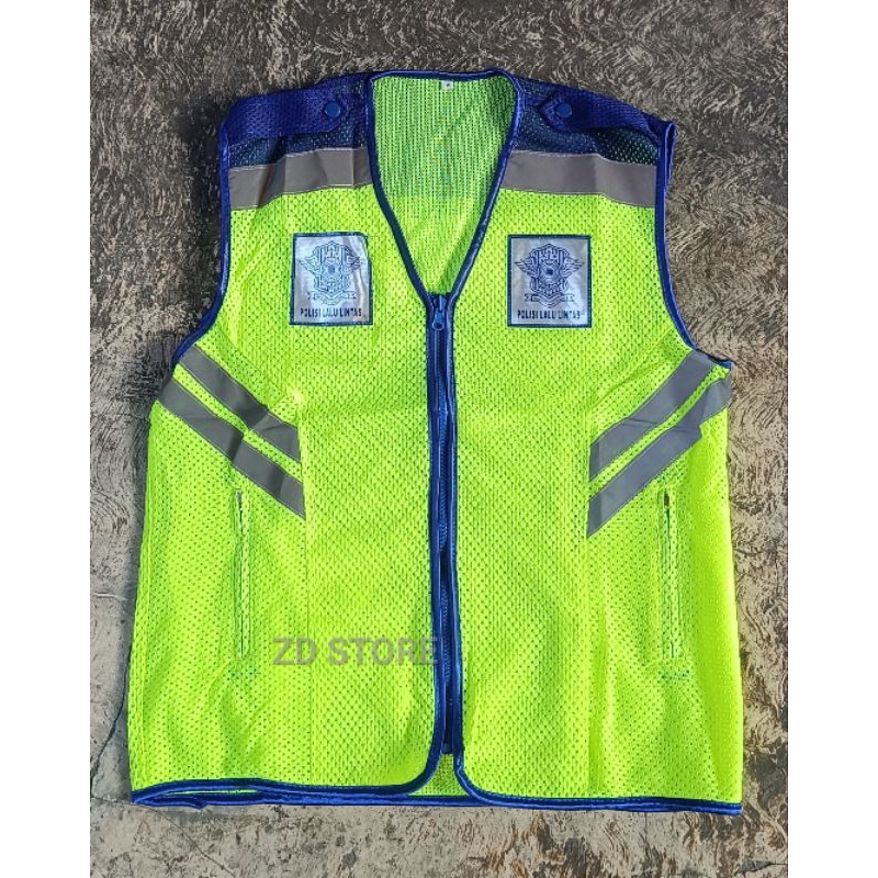 Rompi Lantas Hijau Jaring Tipis/Hitam Dan Biru