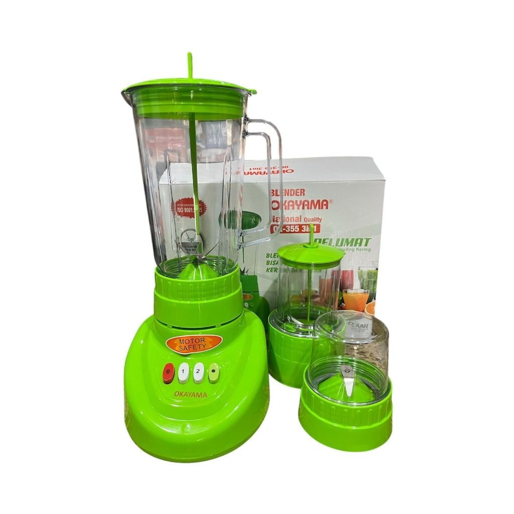 BLENDER SET OKAYAMA 1 LITER JUICER 3IN1 PLASTIK HIJAU SNI OK-355