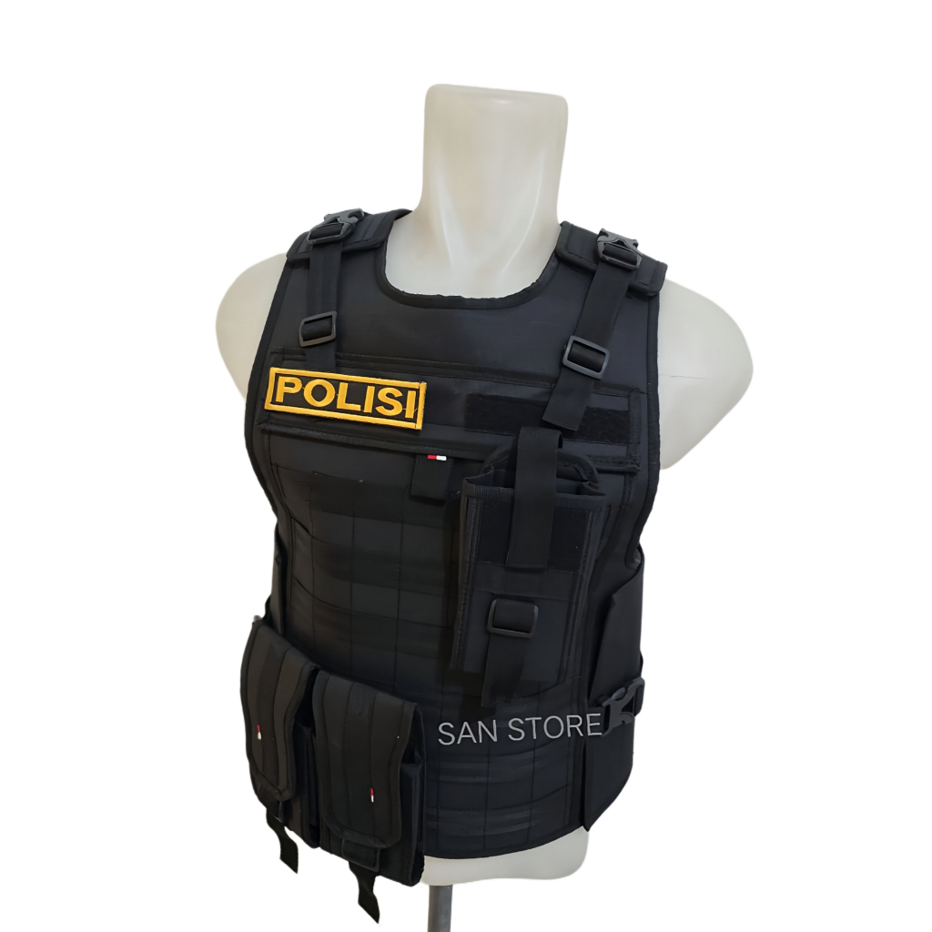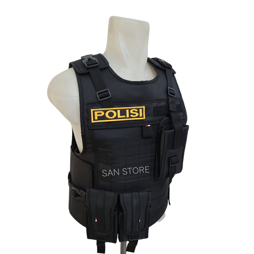 ROMPI ANTI ANGIN POLISI HITAM TULISAN KUNING LENGKAP