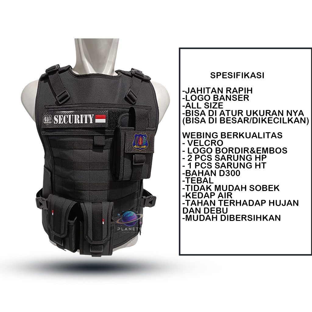 Security - Rompi Body Vest Anti Angin Protector Pelindung Dada Variasi Hitam